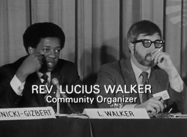 “在你的社区里,有一种破坏性的心态在起作用,这种心态被一种保守(小c)、基督教(大c)的自满(全大写)所覆盖,这种心态此刻可能正在啃噬着这个社区的核心。”——小组成员Rev. Lucius Walker在1970年谈到哈利法克斯的沃尔沃工厂,那里没有一名黑人员工。屏幕帽从NFB的城市环境中的偶遇.