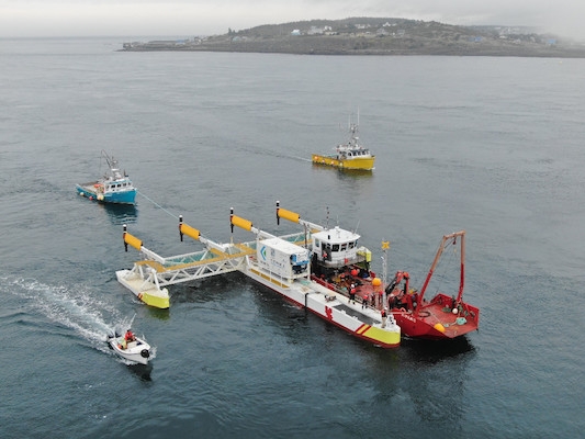 这是一只鸟,这是一架飞机,这是一架新的潮汐涡轮机原型机,在芬迪湾的另一端,在迪格比内克附近的长岛和布瑞尔岛之间一英里宽的航道的平静水域发射。
