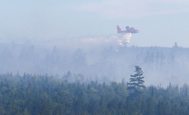 去年,一架水炸弹在安纳波利斯县的七英里湖火灾现场投放炸弹。图片:通信新斯科舍省