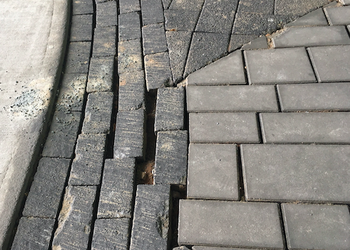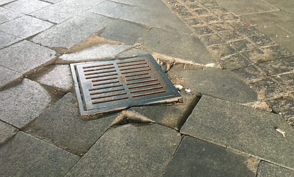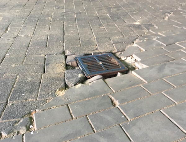 一位工程师告诉我,问题在于街道的设计是错误的。街道上有凸起的地方,这样街上的水就会流到水池里去,但是凸起的地方太大了,所以石头的顶部之间有一个很大的缝隙,但它们的底部却相互推着;结果,当车辆在石头上行驶时,石头就会破裂。很明显整条街撑不了多久了。