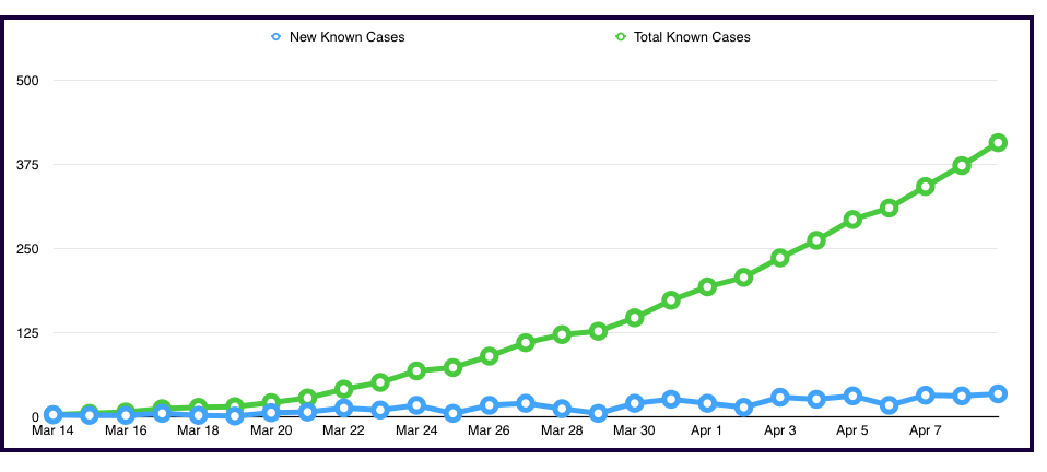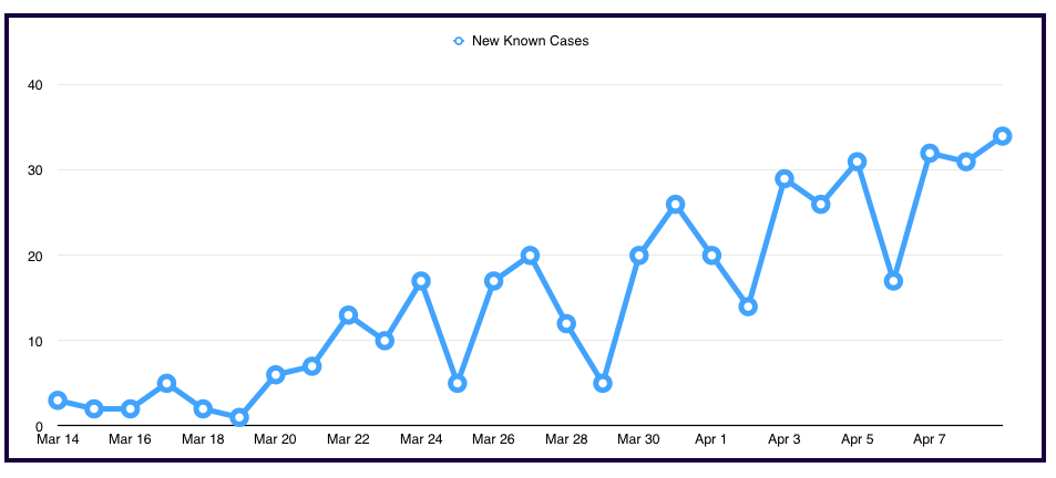 按日期分列的已知COVID-19病例总数6