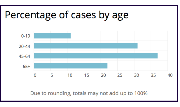 按年龄范围分列的阳性病例