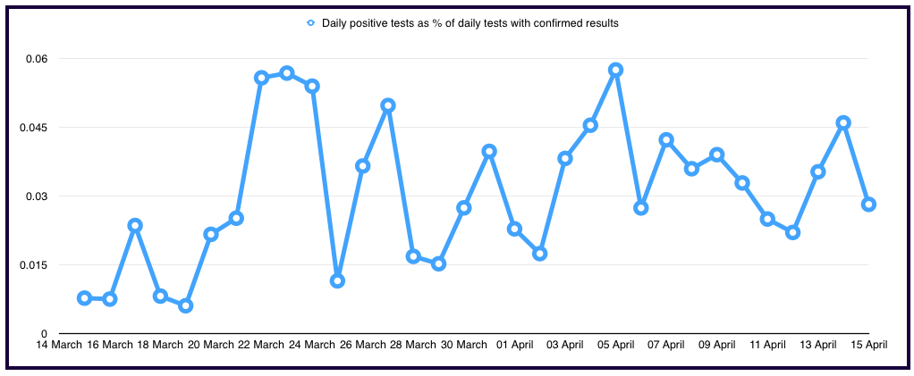 即使增加了检测,即使疗养院的阳性病例数量很高,阳性病例的百分比(相对于已完成的检测确认结果)仍然很低——昨天只有2.8%。