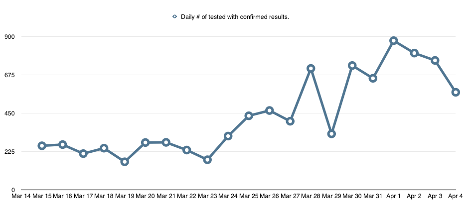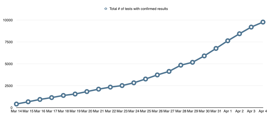 按日期分列的已确认结果的测试总数7