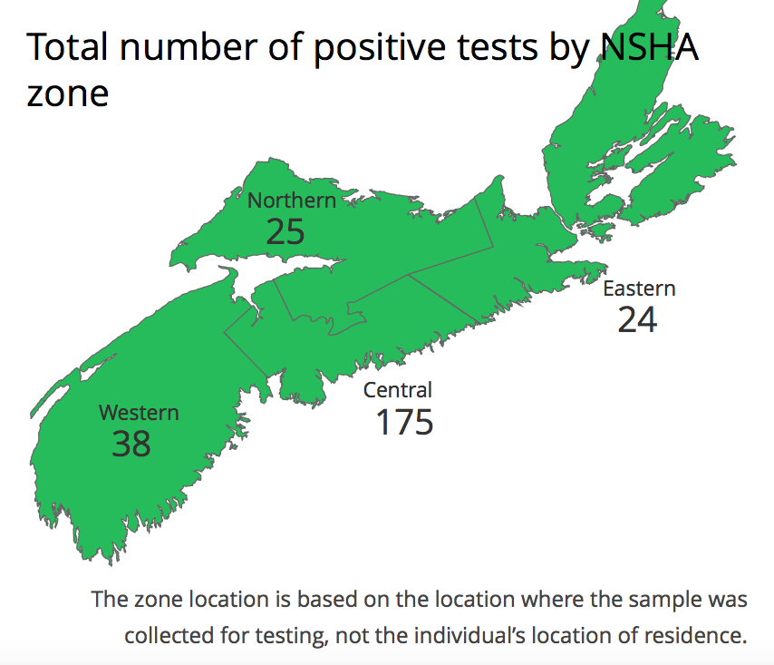 如果你把最后几项放在加拿大统计局新斯科舍省人口信息的背景下,可能会有帮助。我怀疑年龄和性别统计数据或多或少与各省年龄/性别人口统计数据一致,尽管它仍然不成比例地影响哈利法克斯/中部地区。