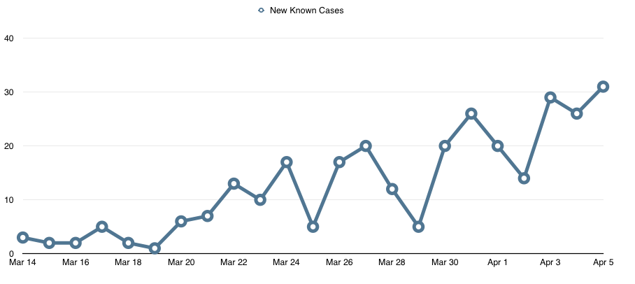 New known cases of COVID-19 by date1