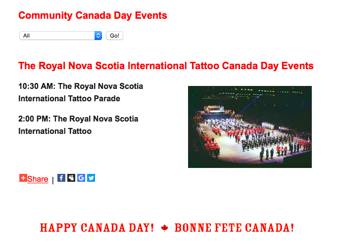 加拿大国庆日当然是今年的一件大事,所以我想知道到底发生了什么。不幸的是,这个城市的加拿大日网站令人困惑:在活动页面,它将纹身列为加拿大日唯一的社区活动:
