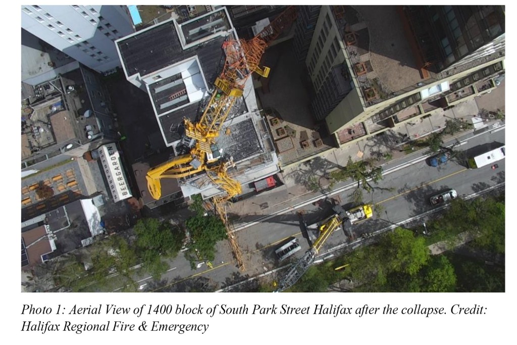 根据省政府的调查,在热带风暴多里安的强风中,起重机倒塌在哈利法克斯的一座建筑上,损坏了多座建筑,疏散了居民,并关闭了一条繁忙的街道两个月,由于“焊接故障”而倒塌。