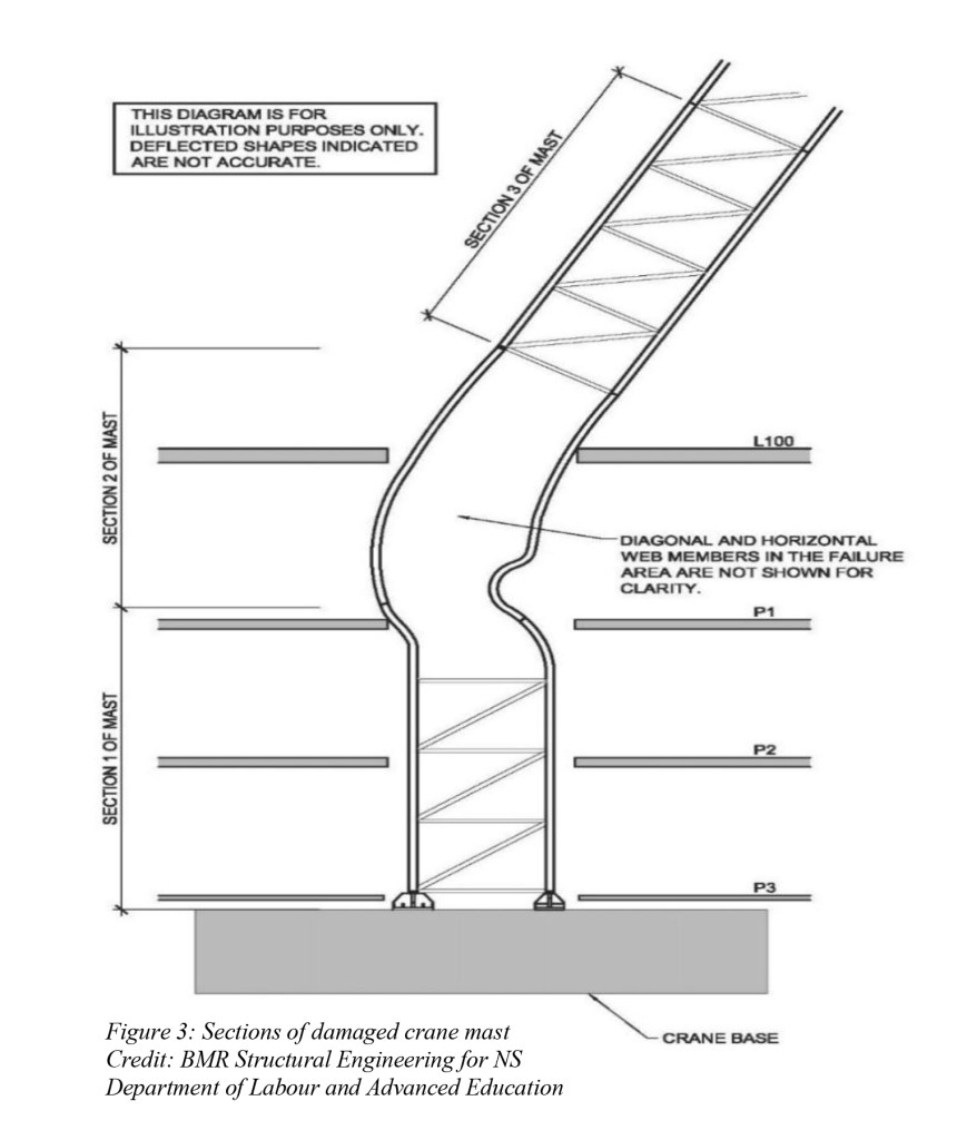 该部门计划与起重机所有者和操作人员会面,审查调查结果。它还将“要求新斯科舍省所有塔式起重机的桅杆和臂架的结构关键焊缝立即进行彻底清洁,对焊缝进行目视检查,对发现必要的任何焊缝进行无损检测,并由法规或标准中规定的人员修复任何缺陷。”