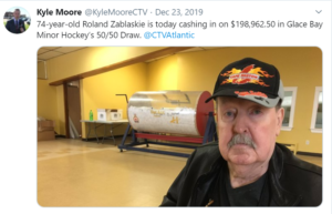萨克维尔协会得到了这个想法胶凝湾小曲棍球自1994年以来已有50-50抽奖。然后,该协会的基于NHL游戏的获胜者有一个池。但随着1994年的NHL锁定,协会必须看看新的筹集资金。有人倾向于50-50绘制的想法。它现在可能是该国小曲棍球最大的最大程度。詹姆斯爱德华兹是冰川湾小曲棍球总统。Glace Bay Brave每周举行,数以万计的奖品。每个12月都有一个特别的圣诞节抽奖。2019年,获胜者赢得了198,962.50美元。
