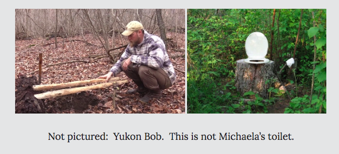 和迈克拉没有喜欢厕所设施。通常,两个木杆或“哼唱极点”定位在一个洞里,但育空鲍勃在迈克拉为迈克拉提供了一个“树丛的树林中的较大座位和更多隐私”。