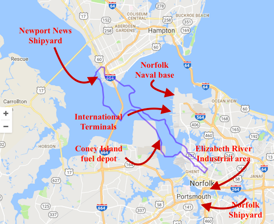 汉普顿道路。我很了解汉普顿路,所以我在这里做了注释,以表明我没有夸大港口的范围: