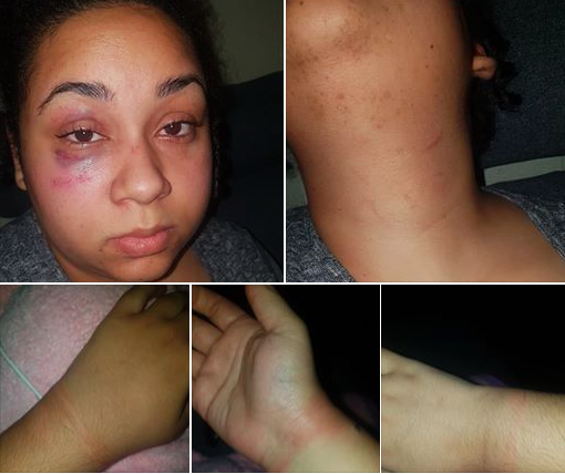 在Facebook发布的图片中,RAO对她的脸部受伤。她的脖子肿了肿胀,在那里她说她被一名军官的“靴子,膝盖和手”钉住了。她的手腕从手铐中瘀伤。