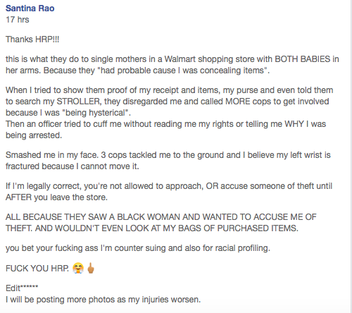 它倒回他们[沃尔玛]。警察不仅仅是在商店周围漫游。有人显然就像,“哦,她必须有隐藏在她的婴儿车里的物品。”