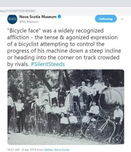 星期一,新斯科舍省博物馆发了一条关于“自行车脸”的推特。