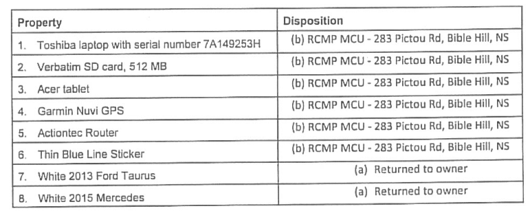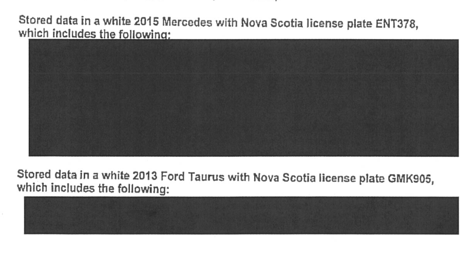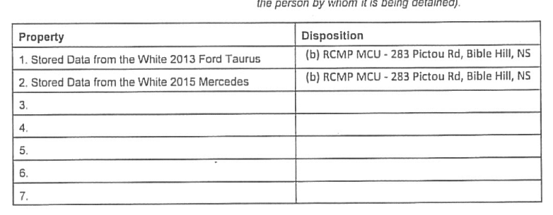 这是一项特定于GW Portland Street酒店所扣押的两辆车的逮捕令 - 2013年福特金牛座和2015年梅赛德斯 - 已被带到伯恩赛德的RCMP总部。