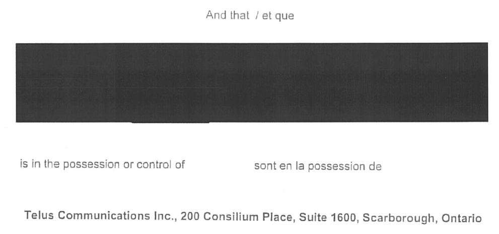 另一个认股权证是所谓的“生产订单”,在这种情况下订购Telus转向某些信息。Telus拥有30个工作日来生产该信息,而那段时间尚未经过;因此,尚未返回生产订单。