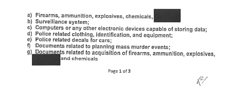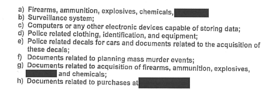 例如,对枪手的调查(我们称他为GW)财产包括搜索某事-我们不知道它是什么,因为它被编辑了-它似乎与“枪支,弹药,爆炸物,化学品”属于同一类别。同样,针对他在达特茅斯波特兰街(Portland Street)的房产,文件指出,“也有(编辑过的)信息。”这只是猜测,但很难想到任何枪支之类的东西,或者任何与达特茅斯财产有关的信息都必须保密,除非它与警方有某种联系。