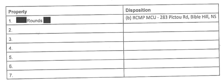 在136个Portapique Beach酒店,缉获了一些弹药,但弹药的那种和数量是从文件中删除的。