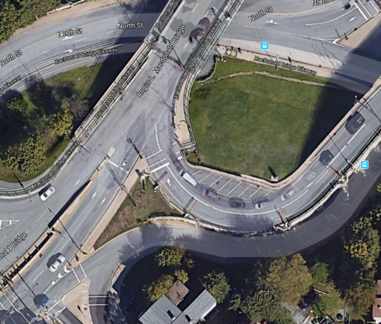 谷歌卫星拍摄的Barrington Street Ramp,它遇到了麦克唐纳桥。
