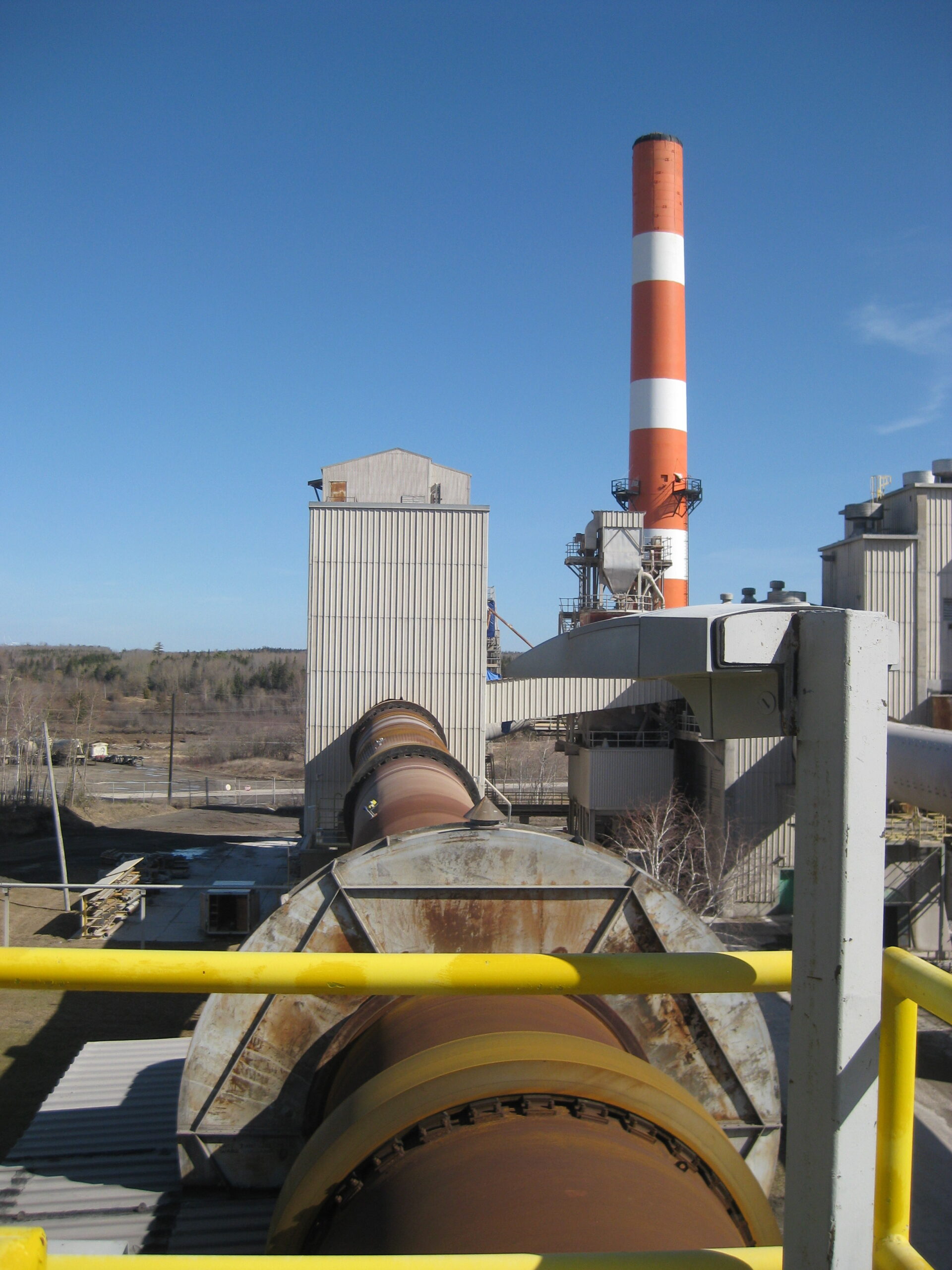 从拉法基·布鲁克菲尔德(Lafarge Brookfield)的废轮胎“注入装置”的顶部,可以看到窑炉和2号烟囱。照片:琳达Pannozzo