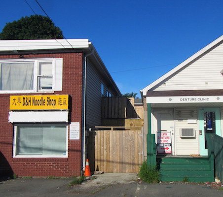 In his typical fashion,Stephen Archibald wanders around Fairviewand finds all sorts of visual delights, including the above juxtaposition, of which Archibald dryly notes, “a perfect relationship: next door to a denture clinic were easy-to-eat noodles.”