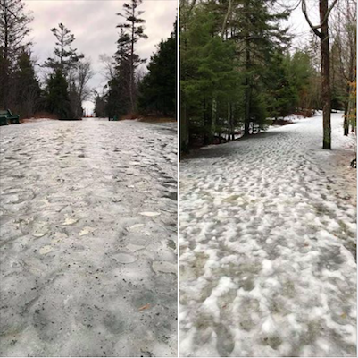 我听过几份独立报告说在普莱森特公园有危险的冰层使得步道几乎无法行走。