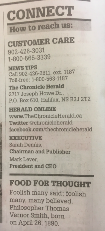 Saltwire纽芬兰出版物的地区总裁莉齐·克拉姆(Lizzie Cramm)显然也离开了,但我不知道她现在在哪里。你们应该还记得,克莱姆接到了一项不令人羡慕的任务:为纽芬兰的四家报纸的关闭进行辩护;“不幸的是,“她说“像大多数公司一样,我们面对我们不能再支持位置是没有必要的......有没有在不快乐的决定。它只是随着你的成长出现这种情况的过程之一,并为你,就像我说的,找到提高效率“。