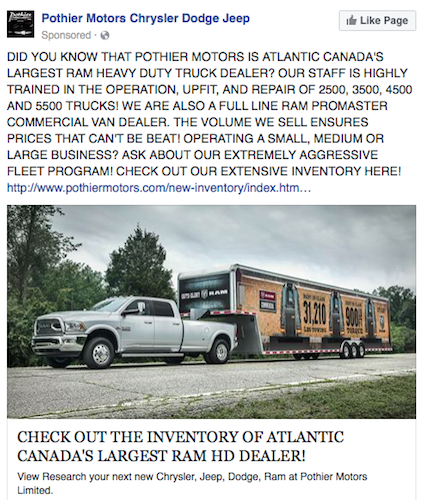 我不认识Pothier Motors的人,这家汽车经销商位于温莎附近的法尔茅斯(Falmouth),但上周他们在Facebook上用全大写的广告对我大喊大叫: