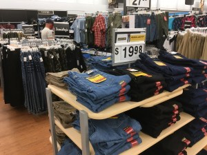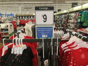 在和皮尔森谈过之后,我决定去我们附近的沃尔玛看看他们是怎么把非必需品卖出去的。事实证明,他们并没有把这些项目分开。相反,在一些衣架上有一些小标志,鼓励购物者坚持购买必需品。除了衣服之外,我没有在任何东西上看到这些标志,我是在专门寻找它们之后才找到它们的。