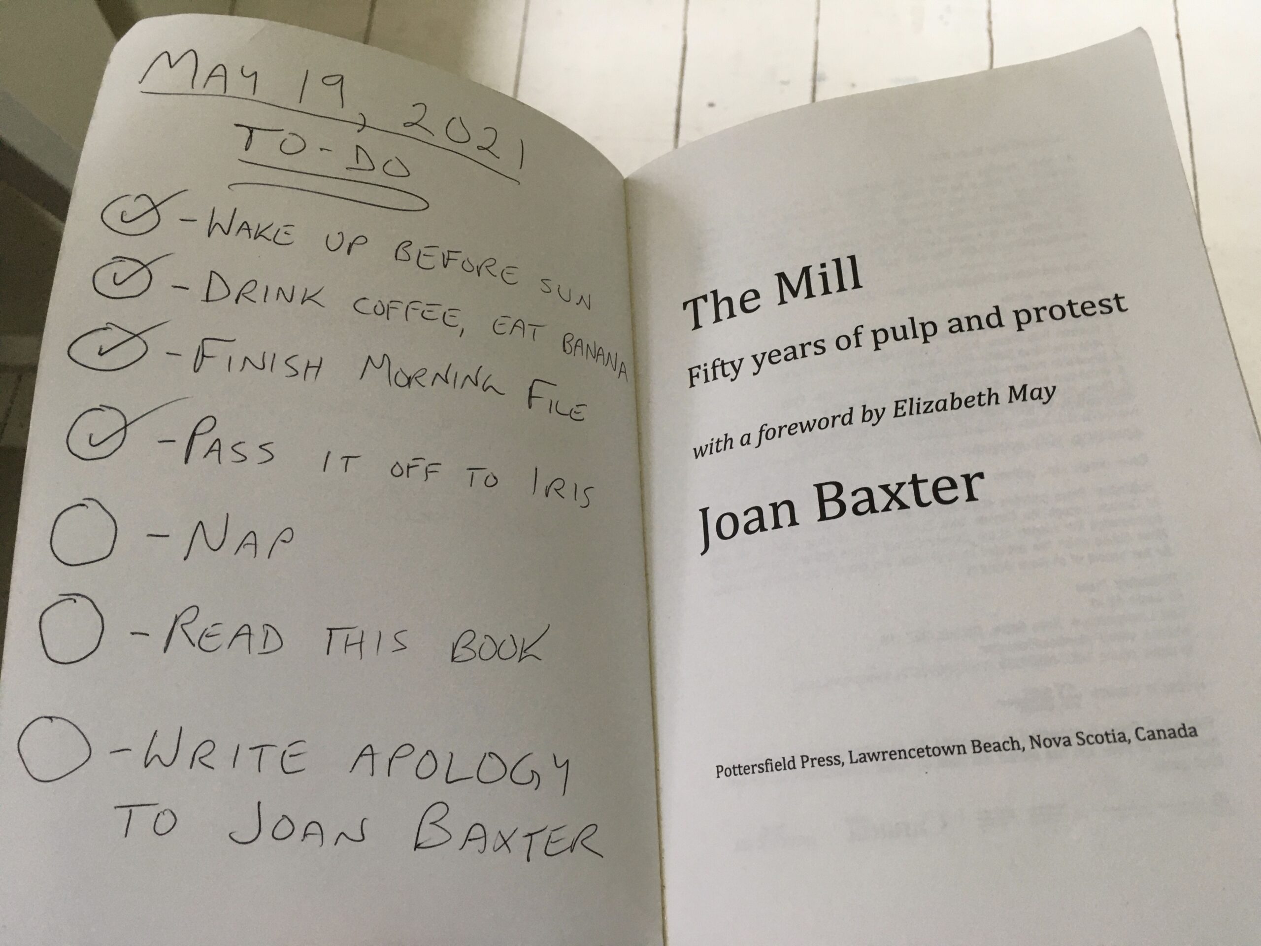 我的待办事项清单,如前所述,写在我的书里面。