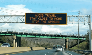 2021年5月1日,通往贝德福德的101公路上的COVID-19标志。照片:伊薇特d 'Entremont