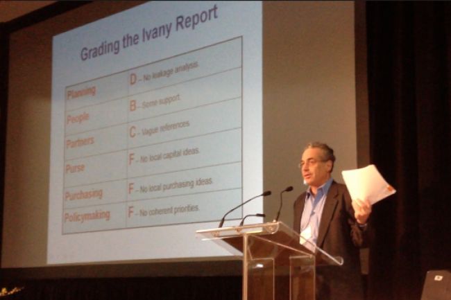 “我对建立当地经济的标准基本上是前两点的伊万涅报告的相反方向,”舒曼说。“我们需要最大限度地提高本地拥有的业务中的工作百分比,因为它们是经济发展的卓越贡献者。我们需要最大限度地提高本地自力更生。不是缺陷全球经济的一种方式,但这是参与全球经济的唯一连贯性方式。
