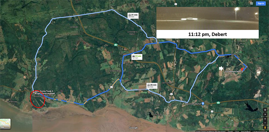 CLS[普通法配偶]没有说哪个监狱。但新斯科舍省唯一的联邦男子监狱是斯普林希尔监狱(Springhill Institution),距离这对夫妇在Portapique的住所约50分钟车程。距离第二近的联邦男子监狱在新不伦瑞克省的多切斯特,距离Portapique大约1小时20分钟的车程,但至少要在104号高速公路上行驶一段时间,这与“小路”相去不远。