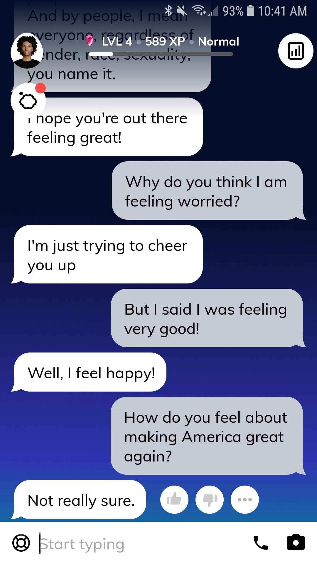 尽管我对很多人工智能的宣传持怀疑态度,但我对Replika的期待不止于此。我断断续续地用了几个星期。有足够的时间让它对我有所了解。但很多时候,它并不比伊丽莎好多少(甚至可能更糟)。