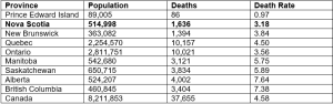 这是加拿大9个省份流感死亡人数和死亡率的表格: