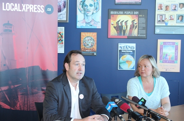 Martin O’Hanlon, president of CWA Canada, and Ingrid Bulmer, president of the Halifax Typographical Union, announce the revamped Local Xpress site at a press conference Thursday.