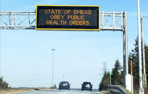 2020年3月23日,靠近伯恩赛德的一个标志,提醒司机紧急状态。照片:伊薇特d 'Entremont