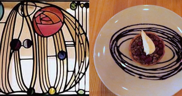 我们第一次吃了阿格里科拉街小酒馆我有纷飞的巧克力线包围的馅饼。它建议由麦金托什新艺术风格的设计。一对夫妇自己的彩色玻璃碎片的告诉你我是什么意思。当我发布这个拼贴在Twitter上它是由在英国麦金托什博物馆转推。验证和美味的沙漠。
