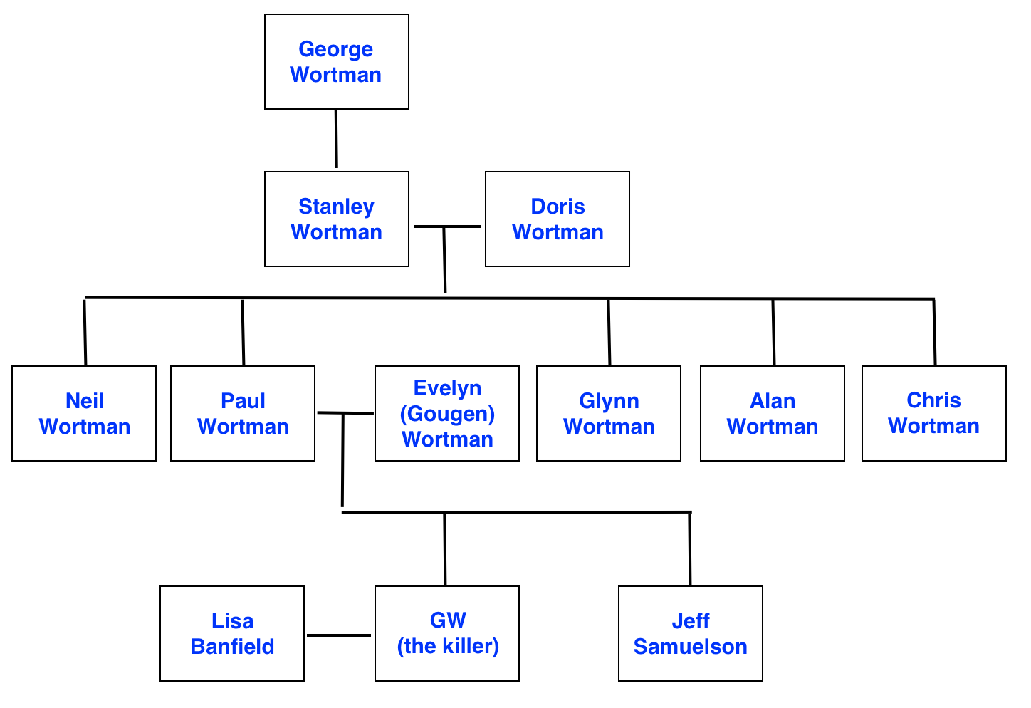 另一个兄弟格林·沃特曼(Glynn Wortman)讲述了乔治·华盛顿“还是个小男孩”时发生的一件事:保罗“拿枪指着乔治·华盛顿的头,然后指着伊夫林的头”。但是保罗否认了这个故事。但这不是我编造的;我是听别人说的,可能是我妈。我母亲知道保罗对伊芙琳和乔治·华盛顿做过的可怕的事情。”大哥尼尔在对警方的陈述中也提到,保罗“用枪指着他妻子的头,威胁说,如果她离开她,他就杀了她。”