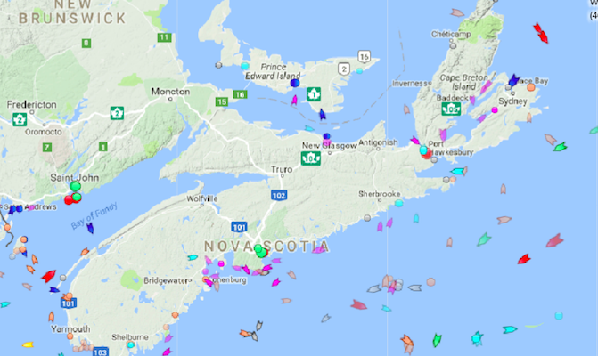 周二上午9:30周五上午9:30海洋。地图:Marinetraffic.com.