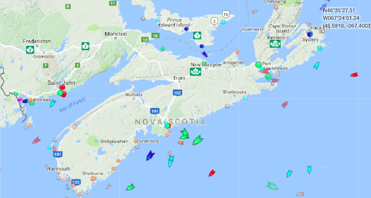 新斯科舍附近海域,周五上午8:45。地图:marinetraffic.com
