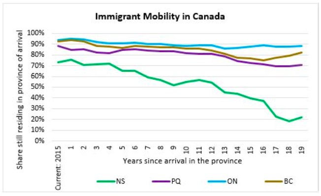 因此,到2037年80%的新移民将会消失是不合理的。事实上,最近的趋势强烈表明这种情况不会发生。其他省份也是如此,比如萨斯喀彻温省,在过去的20年里,它的表现几乎和新斯科舍省一样糟糕,但在过去的20年里,它的经济状况发生了逆转,导致在过去的10年里,留存率要高得多。这种变化在新斯科舍省没有那么剧烈,但仍然非常重要。