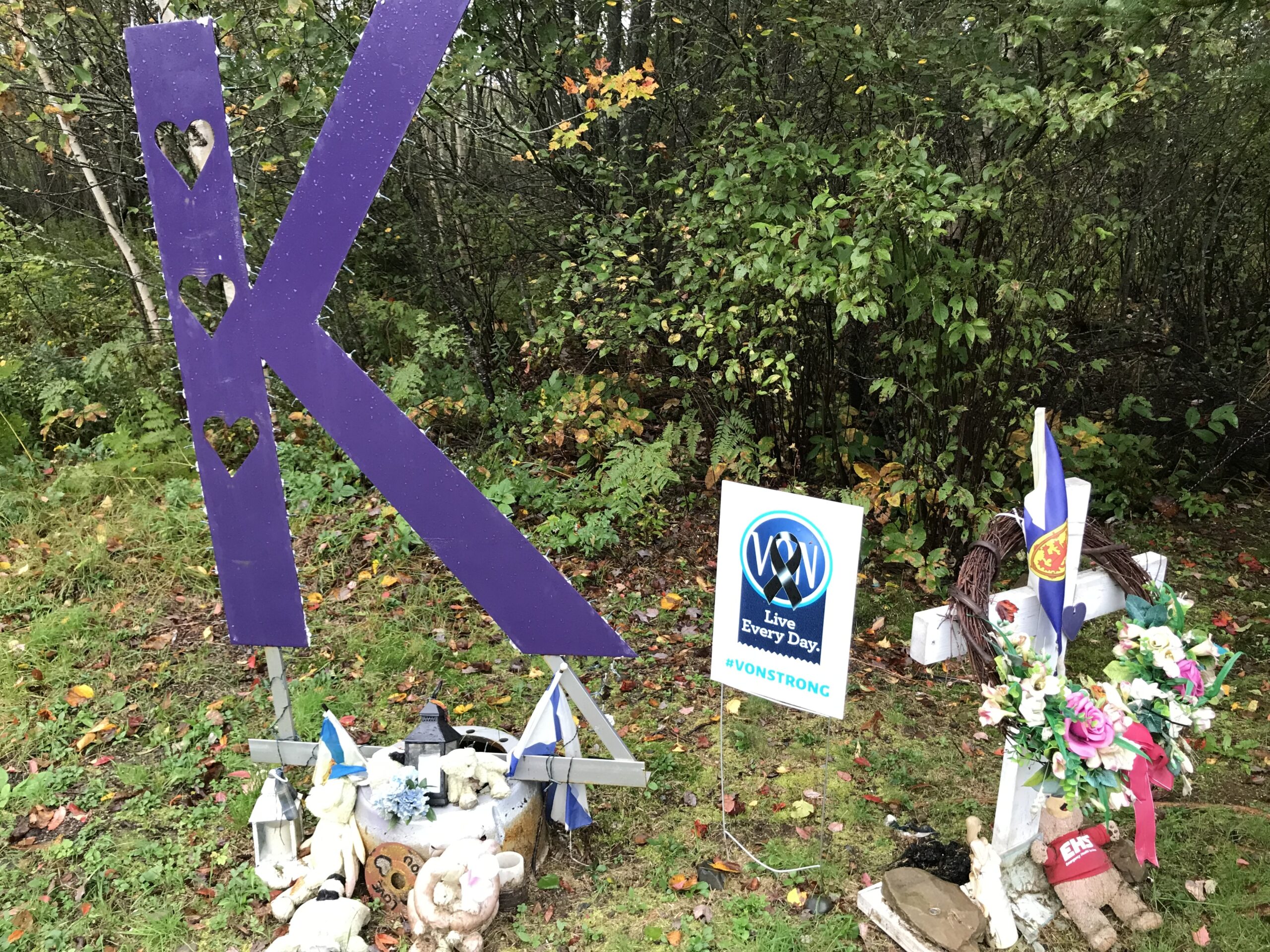 平原路上的一座纪念碑是献给克里斯汀·比顿的,他是2020年4月18日至19日遇难的22人之一。照片:Jennifer Henderson