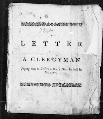 MacGRegors 11页函上发表于1788年的标题“一封信给牧师敦促他在奴隶制举行的黑人女孩。”它在这里存档在互联网上,但是字体太小了,我的眼睛看不清。