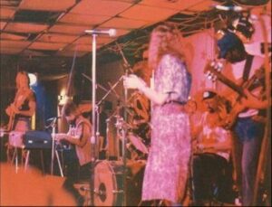 Pam Marsh singing with the Doobie Brothers when they played on stage at the Misty Moon in August 1980. Photo: Pam Marsh