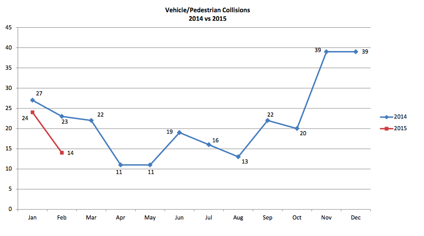 Police have released theFebruary statsfor pedestrians struck by vehicles, which note a stark decline — 14 this February compared to 23 last February. The chart in the report mislabels the month, but by comparing to last month’s report, I can deduce that two drivers were ticketed in the 14 incidents and no pedestrians were ticketed. I note that one of the incidents occurred at the corner of Victoria Road and Park Avenue in Dartmouth, where a marked crosswalk has recently been removed.