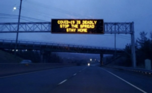 2020年3月23日,靠近伯恩赛德的一个标志,提醒司机紧急状态。照片:伊薇特d 'Entremont