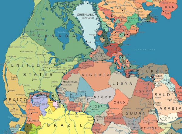 马西莫·彼得罗本(Massimo Pietrobon)的《政治盘古大陆》(Pangea Politico)如果回到3亿年前,今天的政治边界会落在哪里,那时世界实际上只是一个超级大陆。