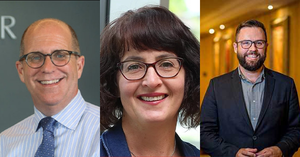 帕特里克·沙利文(左),丽莎·拉奇斯和亚历克·斯特拉特福德与审查员谈论了他们对周二预算公告的看法。